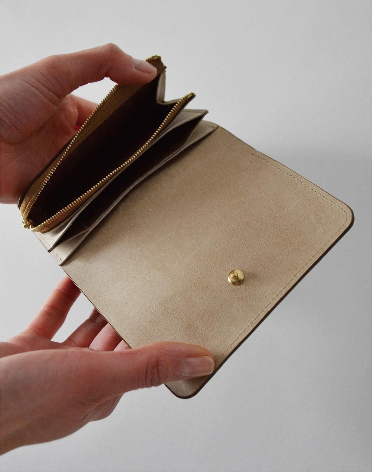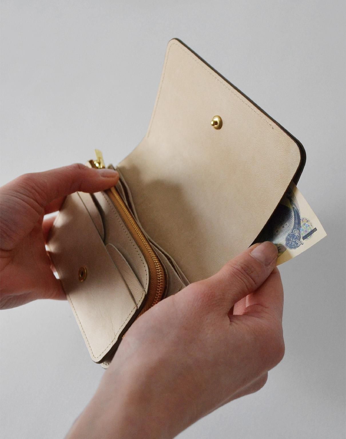 カードのスペースにマチのある小銭入れ、お札が畳まずにすっきりと納められるのがポイントです。
