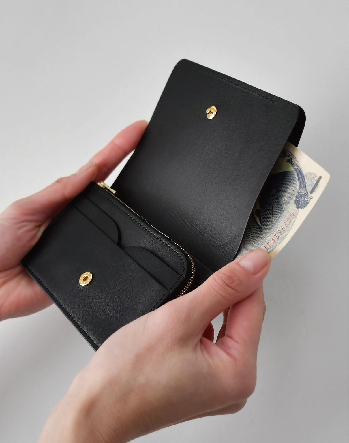 カードのスペースにマチのある小銭入れ、お札が畳まずにすっきりと納められるのがポイントです。