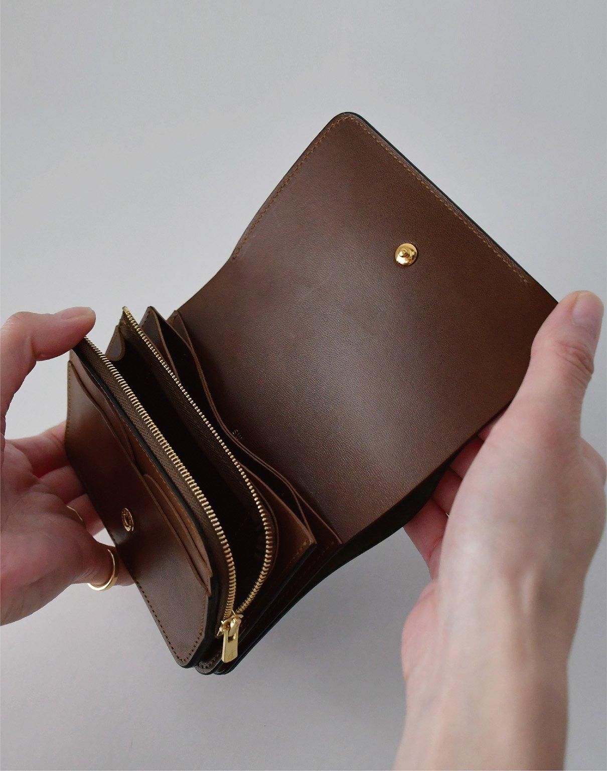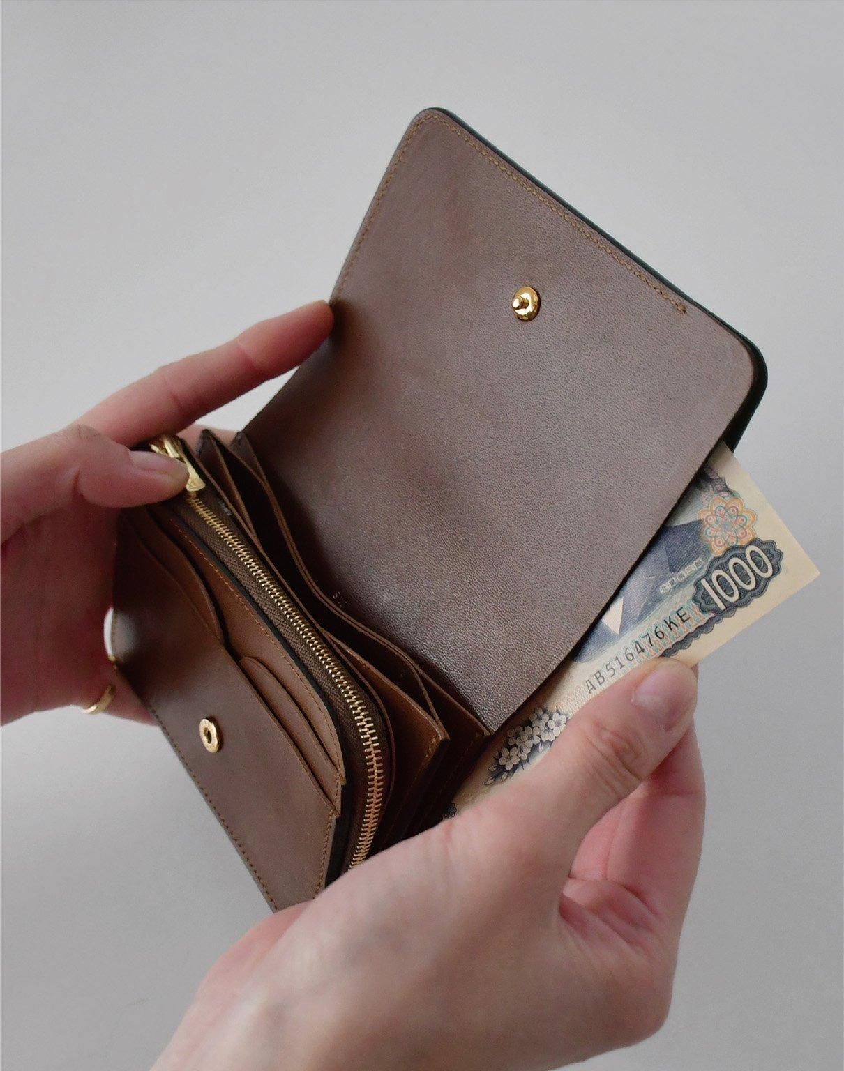 カードのスペースにマチのある小銭入れ、お札が畳まずにすっきりと納められるのがポイントです。