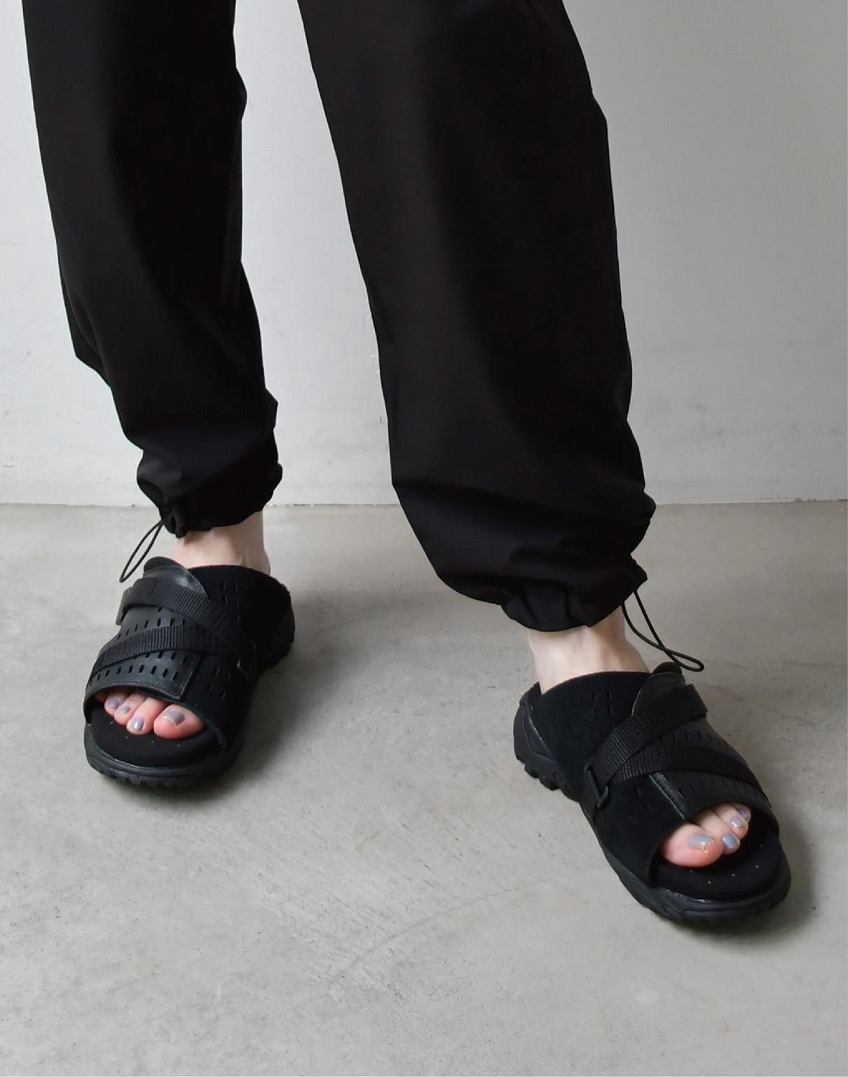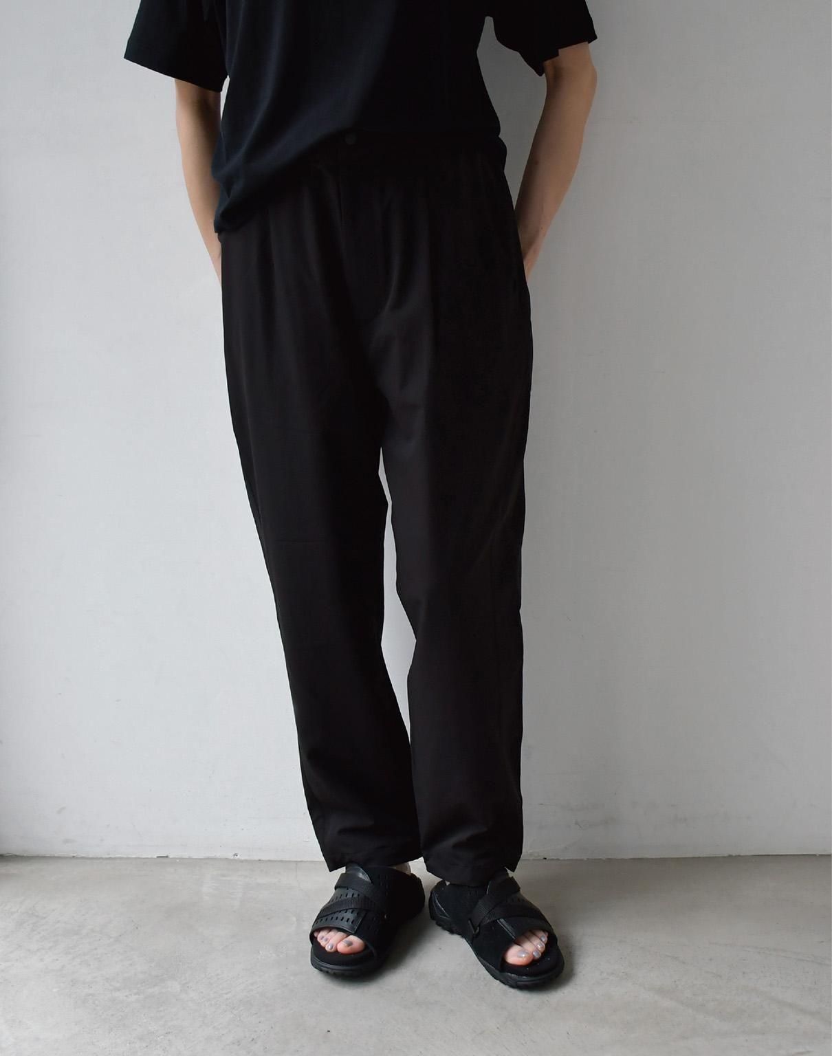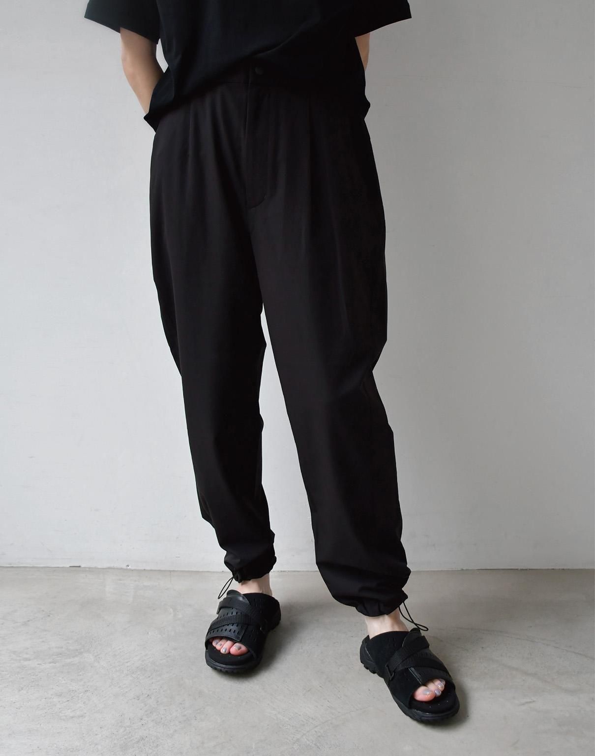 ウエストはゴム紐仕様、ヒップまわりはゆったりとしたテーパードシルエットです。