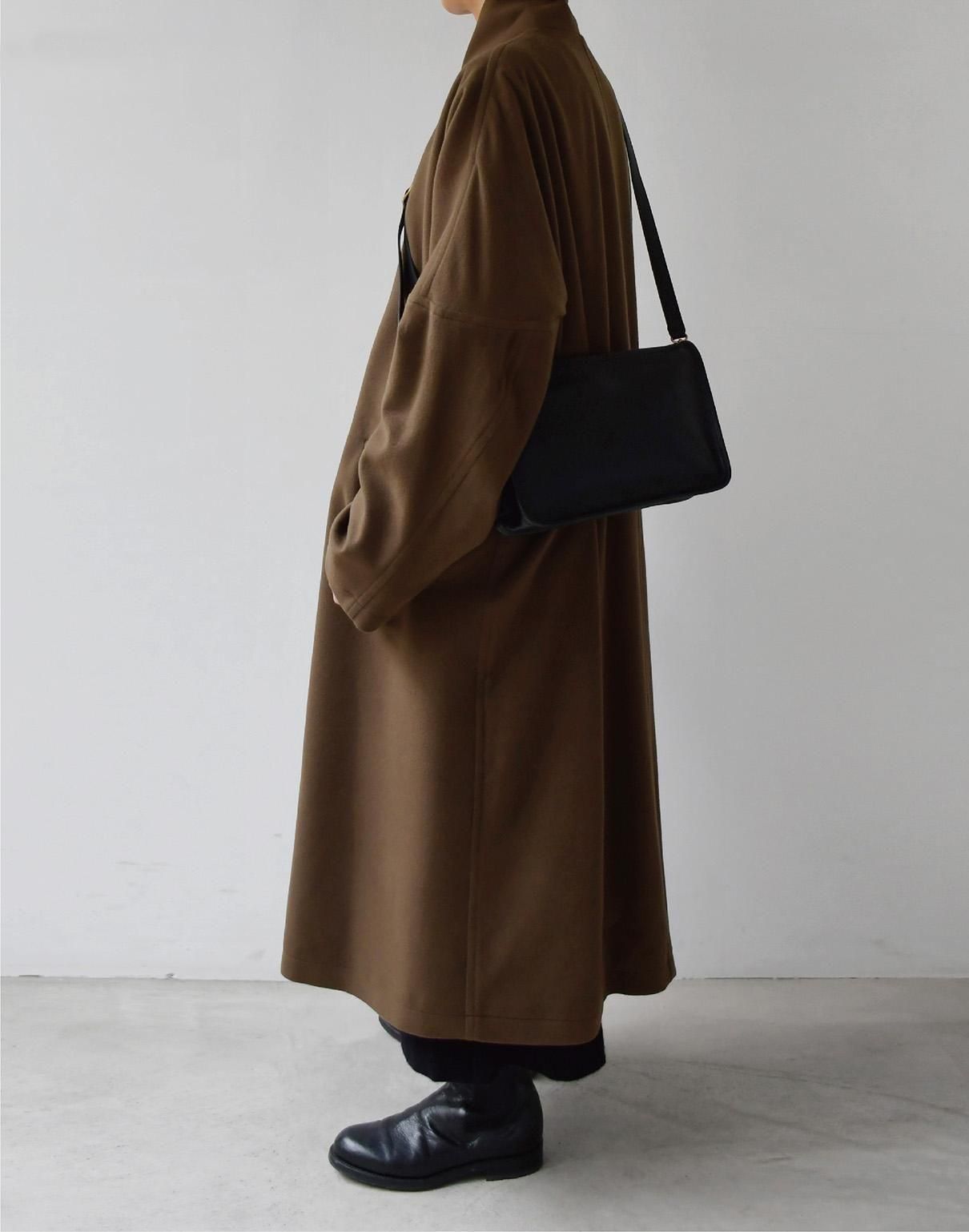 襟を立てた時と(寒い時にはここを留められる安心感)開襟にした時とぐっと印象が変わります。