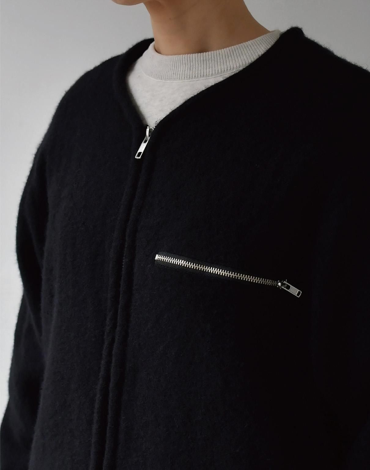 ふわっとしたウール生地に、シルバーのファスナーのコントラストがポイント。